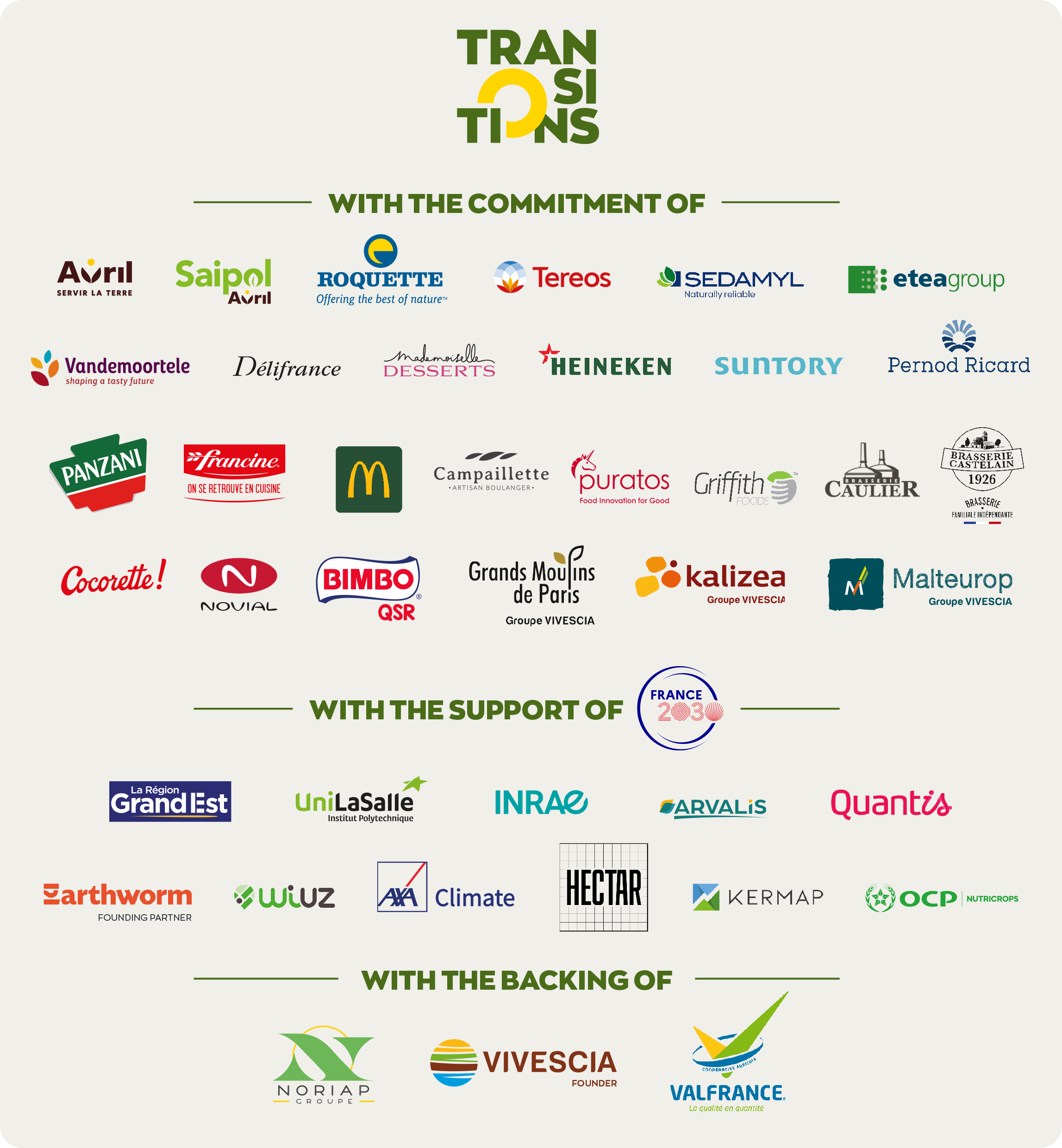 "Our cooperative philosophy and our ambition as a French grain group makes TRANSITIONS a powerful lever for meeting the challenges of agriculture and food starting with concrete solutions to de-risk farmers. Over the last year, TRANSITIONS has helped to change practices and mentalities. Working alongside farmers, by mobilising a coalition of committed companies, we built this innovative, open programme around a wide cooperative, scientific and industrial ecosystem.
